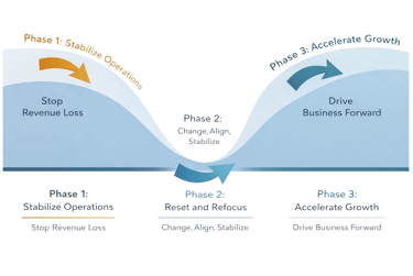 Focused restructuring work for organizations experiencing declining performance, margin pressure, or operational strain. This includes leadership and structural realignment, execution reset, and disciplined decision-making to stabilize the business and support a return to sustainable performance.