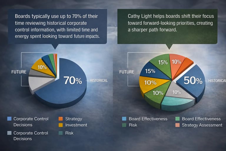 Cathy works with boards and advisory boards to support focused self-assessment, clarify roles and responsibilities, and strengthen alignment around strategy, governance, and execution.